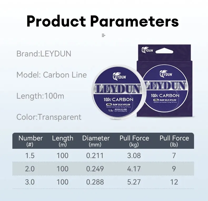LEYDUN 100% Carbon Fishing Lines 100m